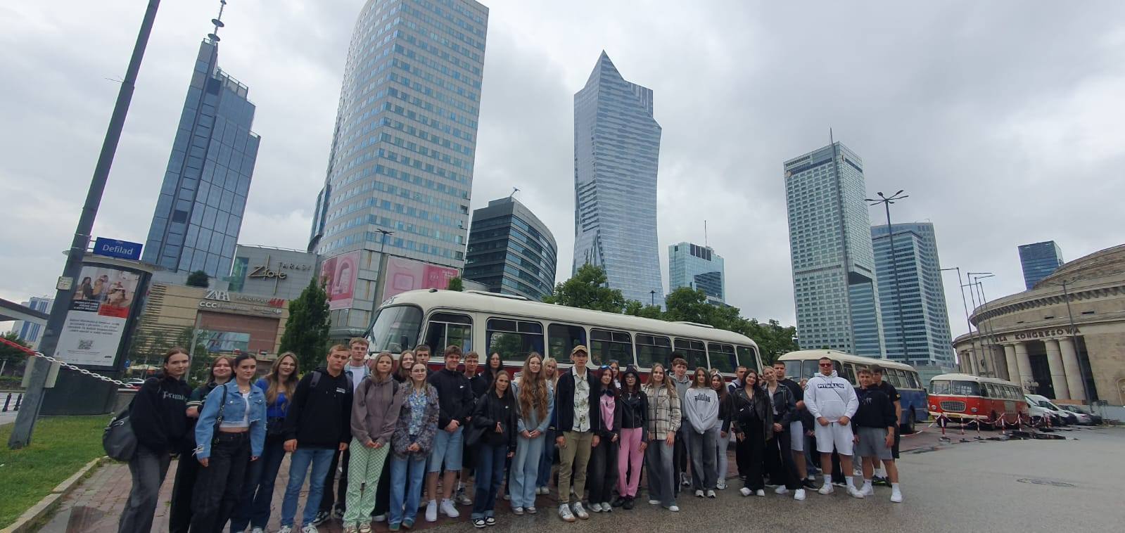 Na początek młodzież udała się na krótki spacer po centrum miasta, podziwiając nowoczesną architekturę. Jednym z pierwszych punktów był Pałac Kultury i Nauki – ikona Warszawy i jeden z najbardziej charakterystycznych budynków w Polsce.