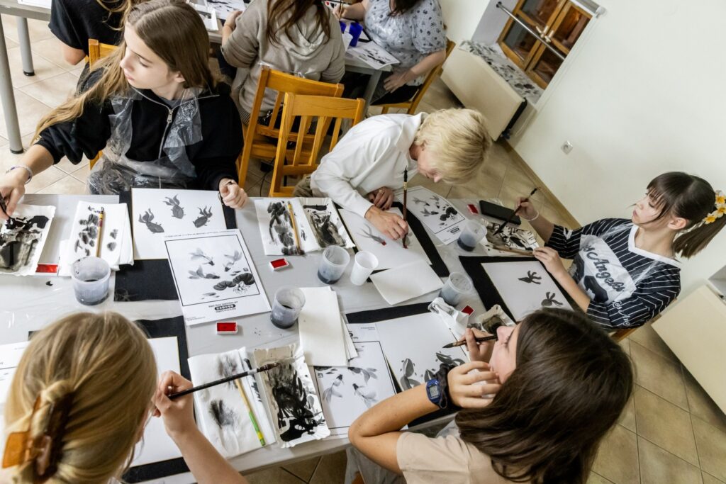 Warsztaty były nie tylko artystycznym doświadczeniem, lecz także okazją do głębszego poznania kultury Japonii – jej uważności, prostoty i dążenia do równowagi. Uczestnicy z zainteresowaniem słuchali opowieści o japońskim podejściu do sztuki i natury, odnajdując w tym inspirację do własnych poszukiwań twórczych.