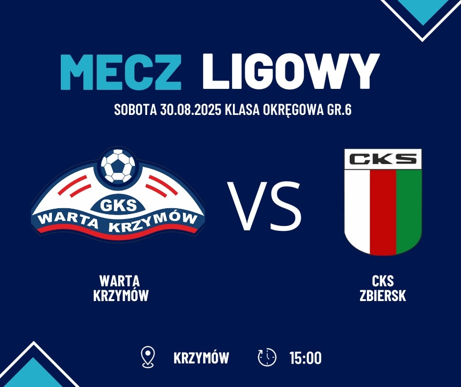 Już w sobotę kibice będą mogli obejrzeć kolejny ligowy mecz w Krzymowie. Na stadion przyjedzie drużyna CKS Zbiersk, która w obecnym sezonie zdobyła do tej pory 3 punkty.