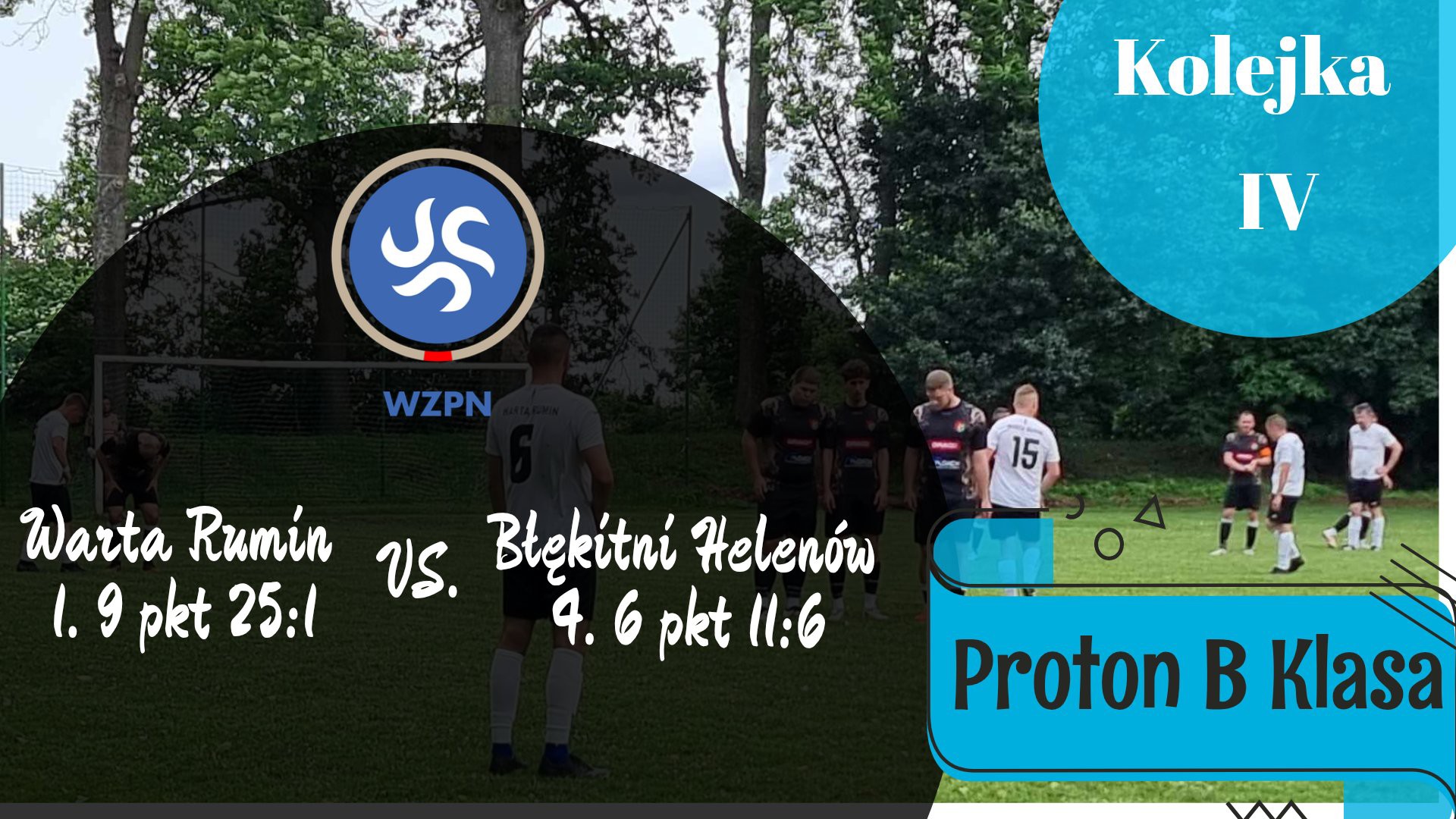 Błękitni Helenów zajmują obecnie 4. miejsce w tabeli z dorobkiem 6 punktów i bilansem bramkowym 11:6. Drużyna przyjezdnych, jak podkreślają trenerzy, nie tylko walczy o awans, ale jest zmotywowana, aby go osiągnąć. Dla Warty Rumin będzie to okazja do zweryfikowania dotychczasowych wyników i przygotowań. W przedsezonowym sparingu lepsi okazali się gracze Helenowa, co dodatkowo podnosi stawkę sobotniego meczu.