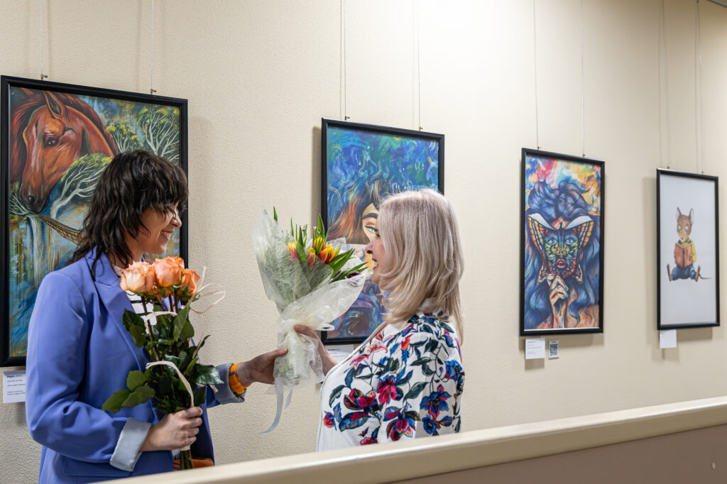Spotkanie w galerii miało niezwykle kameralny charakter. Goście z zainteresowaniem dopytywali artystkę o kulisy powstawania prac, a Magdalena Jakubowska chętnie opowiadała o inspiracjach i procesie twórczym. Szczególnego wymiaru wydarzeniu dodała obecność rodziny artystki oraz jej dawnej nauczycielki. Dzięki temu rozmowa o sztuce szybko przerodziła się w ciepłą, wielowątkową opowieść o drodze twórczej, inspiracjach oraz znaczeniu książek w życiu autorki.